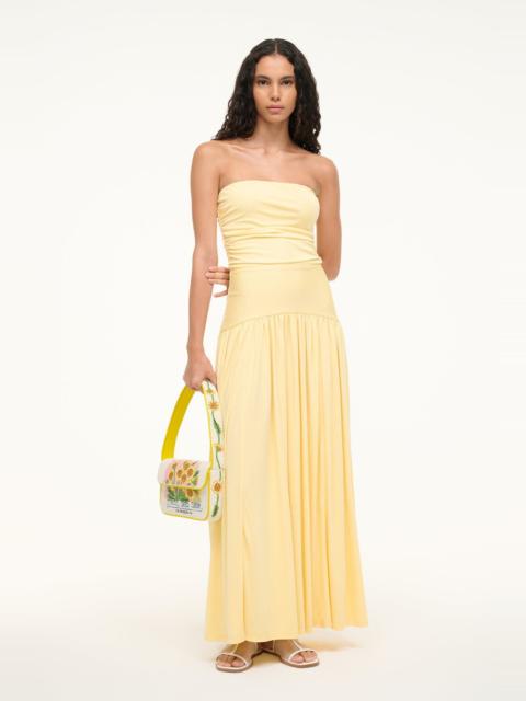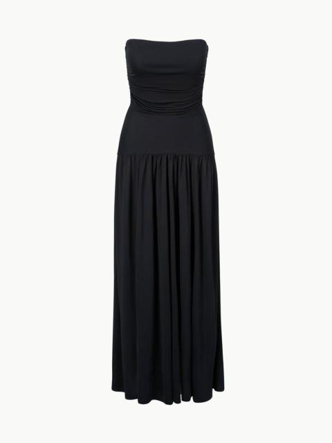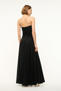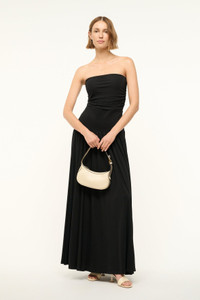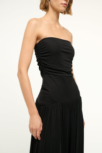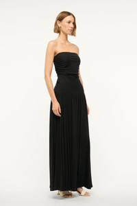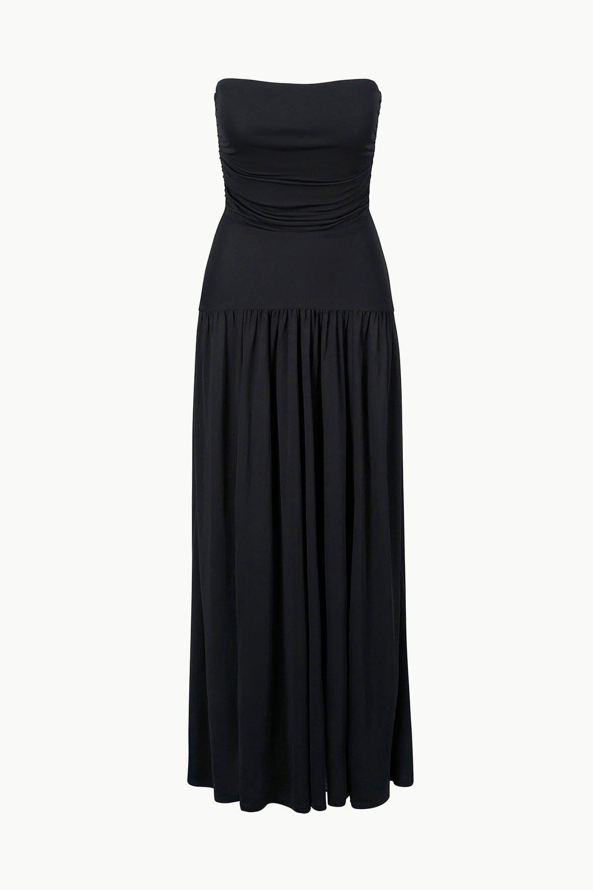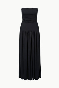 The Mariana is a maxi-length strapless dress with a shirred bodice and a curved yoke at the hips. It is crafted from a comfortable viscose jersey and features a full skirt and center back zipper. MORE DETAILS - 100% Viscose - Model is 5'10" and wearing a size Small - Dry Clean Only