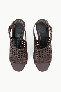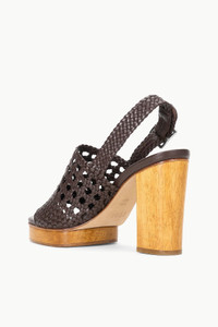 The Martina Platform is a new block heel sandal for Spring. This style features a wooden sole and a woven leather upper, with an adjustable ankle strap. MORE DETAILS - Platform Block Heel Sandal - Upper: 100% Lamb Leather, Sole: 50% Cow Leather, 50% Rubber - Heel Height: 100MM / 3.94IN