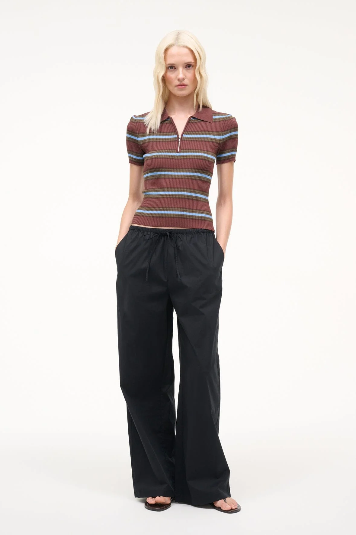 The Mateo Pant delivers effortless style with a mid-rise fit and relaxed leg silhouette. Featuring a drawstring waist for adjustable comfort and functional pockets, this versatile pant transitions seamlessly from casual to elevated looks. MORE DETAILS - 98% Cotton, 2% Spandex - Model is 5'10 and wearing a size S - Dry Clean Only