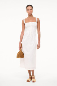 The Matilde is a Victorian-inspired dress with pintucking, center front buttons and lace details at the straps and neckline. The Matilde features grosgrain ties at the neckline to adjust the fit. MORE DETAILS - Self: 100% Cotton, Lining: 100% Cotton - Model is 5'9 and wearing a size 4 - Dry Clean Only