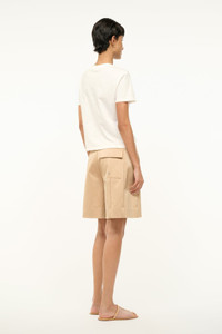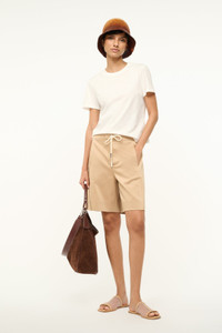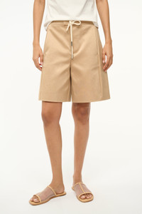 The Mendoza is a board short-inspired short crafted in satin, with front seam pockets, a back pocket, and front cord ties. MORE DETAILS - 55% Acetate, 45% Polyester - Model is 5'10 and wearing a size 4 - Dry Clean Only