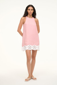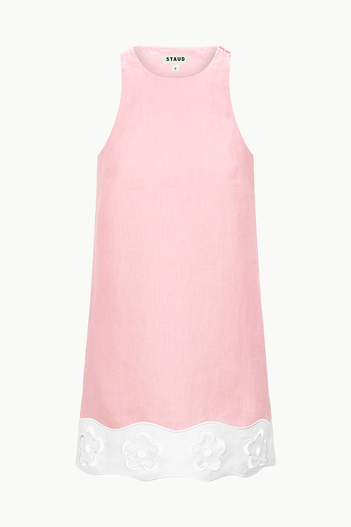 STAUD MIKA LINEN DRESS FADED BLUSH WHITE