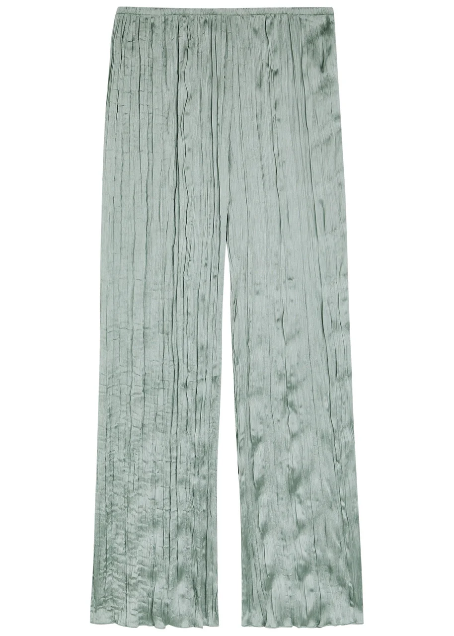 Info & Care Staud plisse trousers Elasticated waist Pull on 100% polyester Dry clean Coordinating items available Size & Fit Inside leg length: 30 inches/ 76cm Midweight Relaxed fit, straight-leg cut Model is 5'9"/ 175cm and wears a size small