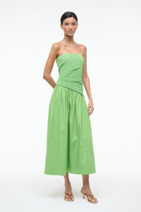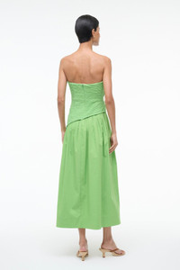 The Nia Dress pairs a smocked cotton bodice with a structured poplin skirt. Strapless at a midi length, this dress features timeless silhouette that works for any occasion. MORE DETAILS - Self: 99% Cotton, 1% Elastane, Trim: 90% Polyester, 10% Spandex - Model is 5'10 and wearing a size S - Dry Clean Only