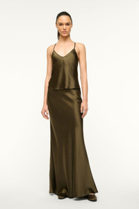 STAUD ODIN SILK SKIRT WOODLAND
