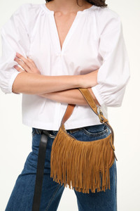 Updated in fringed suede, our latest shoulder shoulder bag features a moon-buckle hardware detail and a top-zip. MORE DETAILS - Suede Fringe Shoulder Bag - 100% Cow Leather