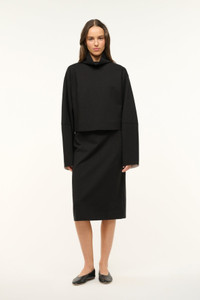 The Pascale Skirt is an easy knee-length pencil skirt crafted from our signature stretchy ponte fabric. This style features a hidden zipper closure at the back and can be paired with the matching Binoche or Capsule Tops for a coordinating set. MORE DETAILS - 70% Rayon, 25% Nylon, 5% Spandex - Model is 5'10 and wearing a size S - Dry Clean Only