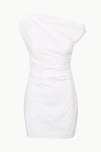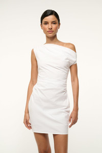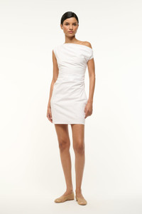 The Phare Mini Dress is the perfect mini dress to wear dressed up or down, featuring soft ruching detailing throughout the bodice and an off the shoulder look. This style is made in our cotton poplin fabric. MORE DETAILS - 98% Cotton, 2% Spandex - Model is 5'10 and wearing a size 4 - Dry Clean Only