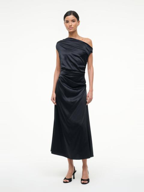 The Phare Dress features a draped off-the-shoulder neckline, a fitted waist and an ankle-grazing length. Updated in our stretch silk, this dress is perfect for a special occasion. MORE DETAILS - 93% Silk, 7% Spandex - Model is 5'10 and wearing a size 4 - Dry Clean Only