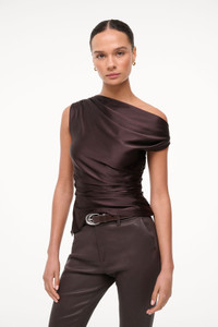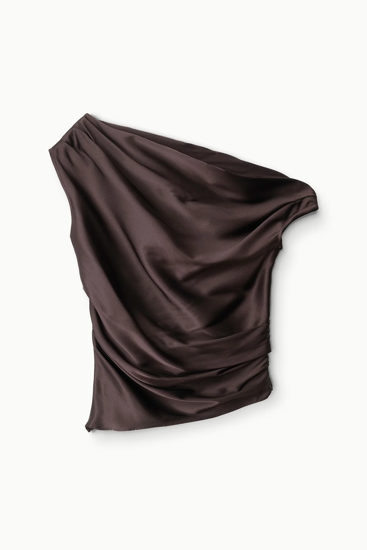 An off-the-shoulder top crafted from a silk satin fabric that offers some stretch for added ease. The Phare Top features a drapey yet fitted silhouette for any occasion. MORE DETAILS - 93% Silk, 7% Spandex - Model is 5'10 and wearing a size 2 - Dry Clean Only - If in between sizes, please consider sizing up.