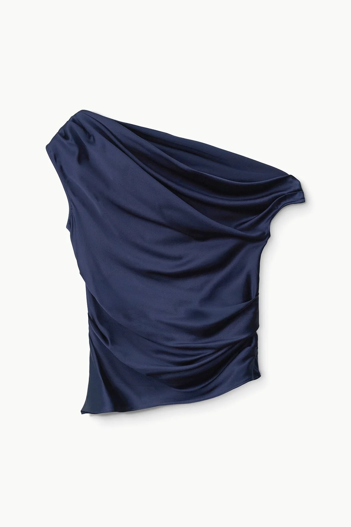 An off-the-shoulder top crafted from a silk satin fabric that offers some stretch for added ease. The Phare Top features a drapey yet fitted silhouette for any occasion. MORE DETAILS - 93% Silk, 7% Spandex - Model is 5'10 and wearing a size 4 - Dry Clean Only