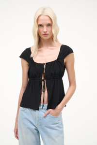 Breezy and effortless, the Pomona top features short cap sleeves and dual front tie closures for adjustable fit and easy styling. MORE DETAILS - Self: 100% Viscose, Lining: 100% Polyester - Model is 5'10 and wearing a size S - Dry Clean Only
