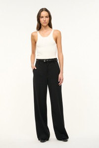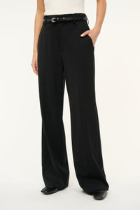 The Prince Pant is a flat front wide leg pant made from soft suiting. It features a zipper fly and back welt pockets. MORE DETAILS - 63% Polyester, 33% Rayon, 4% Spandex - Model is 5'10 and wearing a size S - Dry Clean Only