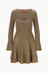 The Raquel Dress is crafted from a lurex compact knit fabric and features bell sleeves and a scoop neck. MORE DETAILS - 45% Polyester, 27% Metallic, 26% Nylon, 2% Elastane - Model is 5'10 and wearing a size S - Dry Clean Only