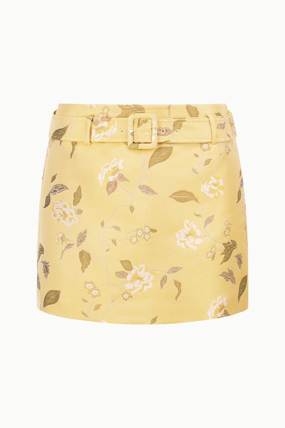 The Reese Mini Skirt is a fitted mini crafted in our brocade print jacquard. This style features a belt detail and can be worn with the Jeanette Top for a matching look MORE DETAILS - 100% Polyester - Model is 5'10 and wearing a size 4 - Dry Clean Only