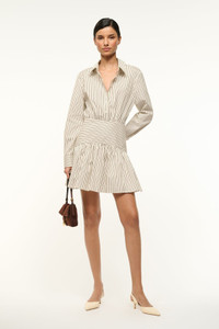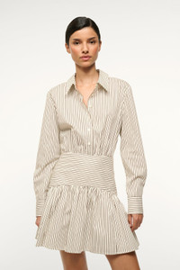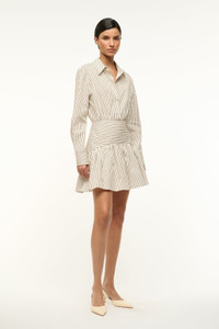 STAUD ROCCO MINI DRESS IVORY DARK OAK MICRO STRIPE