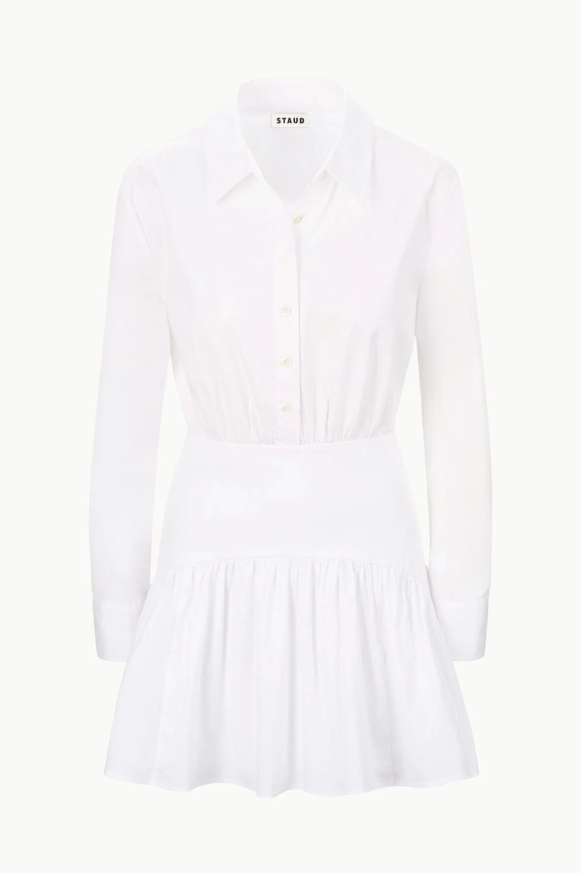 The Rocco Mini Dress is the mini update to our best-selling Rocco Dress. This shirtdress features a classic collar and button front, with an a-line mini skirt and curved yoke at the hip. MORE DETAILS - 98% Cotton, 2% Spandex, Lining: 100% Cotton - Model is 5'10 and wearing a size 4 - Dry Clean Only