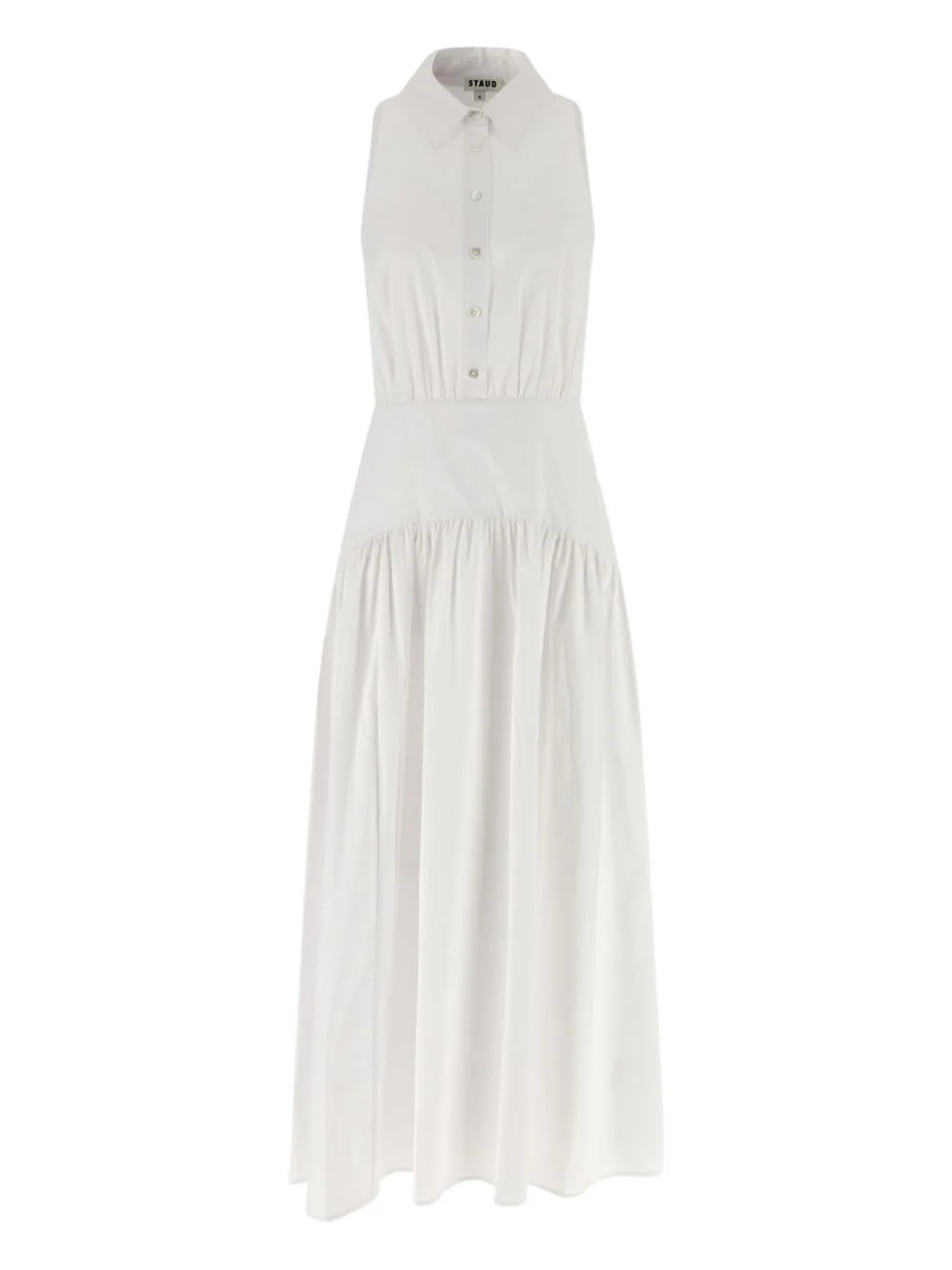 Romy wrinkled maxi dress Highlights - White - Collar - Front button closure - Wrinkled at the waist - Wide skirt - Sleeveless Imported Composition Cotton 98%, Spandex/Elastane 2% Washing instructions Read Manufacturer Guidelines