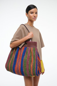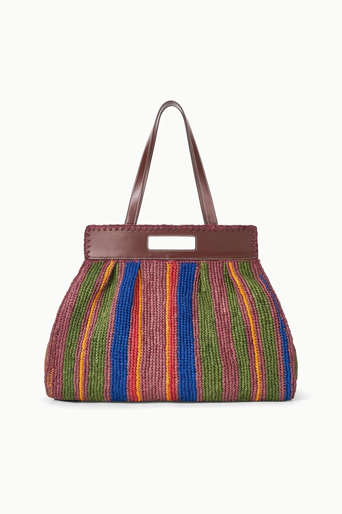 STAUD RUE TOTE BAG JUNGLE STRIPE RAFFIA