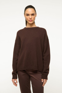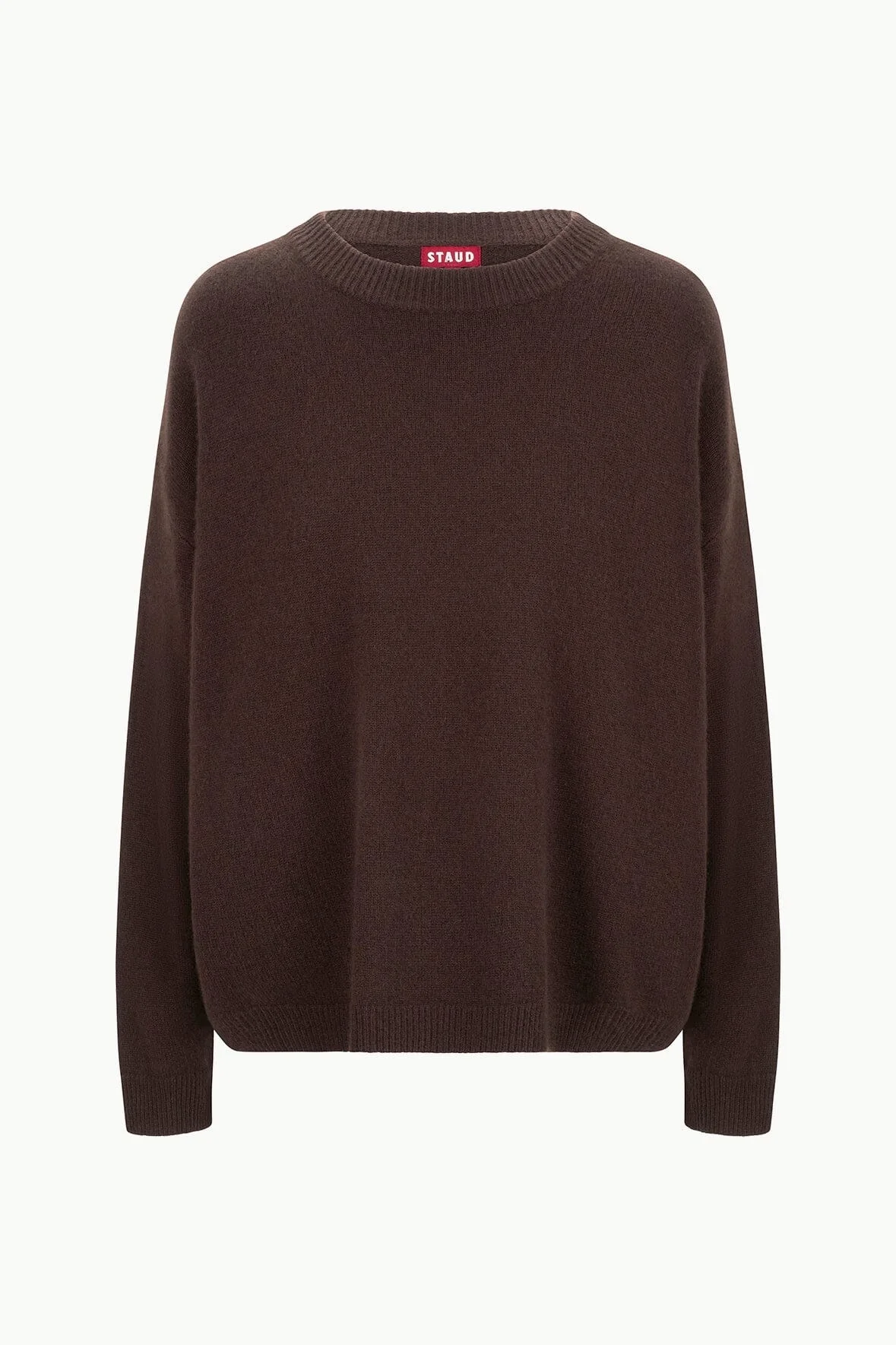 STAUD SERRANO CASHMERE RELAXED CREW DARK CHOCOLATE