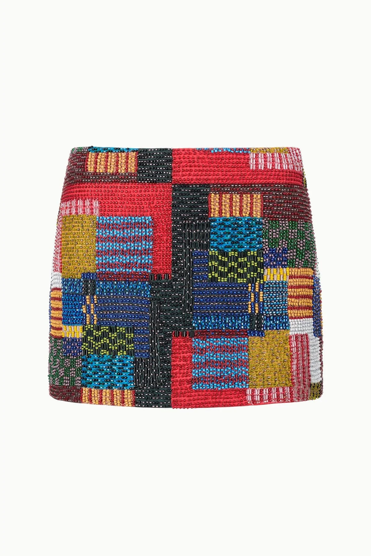 The Supernova Skirt is a low waist mini skirt, featuring our hand-beaded patchwork print. MORE DETAILS - 80% Nylon, 20% Elastane - Model is 5'10 and wearing a size 4 - Dry Clean Only