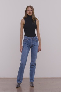The Teddy Jean is a classic straight-leg silhouette with an easy mid-rise waist. Crafted from Italian rigid denim, it has a flattering V-shaped yoke at the back. Complete with antique-finish hardware and a logo-embroidered button fly. MORE DETAILS - Fabrication: 100% Italian Cotton - Denim Weight: 13oz - Care: Machine wash cold, inside out. Lay flat or hang to dry. - Model is 5'11 and wearing a size 25 with a 33" inseam. - Rise: Mid - Inseam Options: 30” & 33” - Fit: Straight Leg