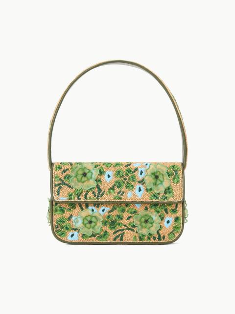 Our best-selling Tommy Bag is updated in a hand-beaded design featuring divers. This style has vegan leather piping, a magnetic snap closure, and a back slip pocket. MORE DETAILS - Beaded Vegan Leather Shoulder Bag - Upper: 100% Glass Beads; Base: 100% Rayon; Trim: 100% Polyurethane