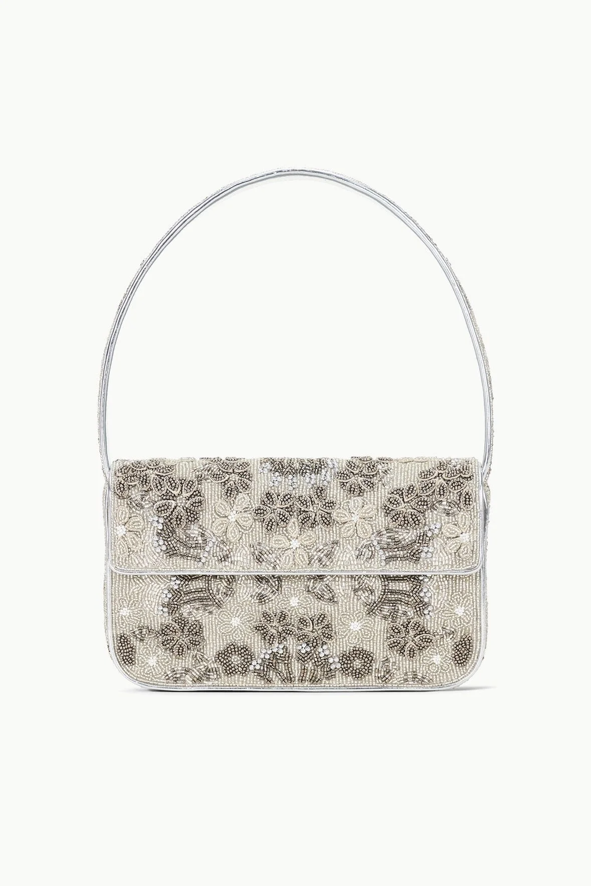 STAUD TOMMY BEADED BAG SILVER GARDEN PARTY