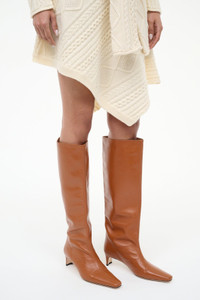 The Wally is a leather knee-high boot featuring a pointed toe and a slim heel design. MORE DETAILS - Leather Knee High Boot - Upper: 100% Lamb Leather, Sole: 90% Cow Leather, 10% Rubber - This style has a narrow fit. If between sizes, consider sizing up.
