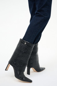 STAUD WALLY HANDWOVEN FOLDOVER MID CALF BOOT BLACK WOVEN