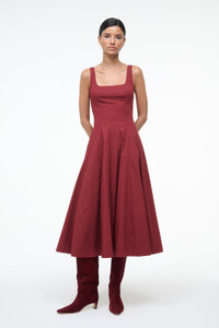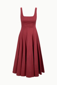 The Wells Dress features a corset-style panel construction to create a flattering, fitted shape through the waist and a full skirt which hits just below the knee. Constructed in lightweight cotton poplin. MORE DETAILS - Self: 98% Cotton, 2% Spandex, Lining: 100% Cotton - Model is 5'10 and wearing a size 4 - Dry Clean Only