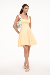 The Mini Wells Dress has a square neckline and features a corset-inspired paneled bodice to create a flattering, fitted shape through the waist. It is made out of a lightweight cotton poplin and has a center back zipper. MORE DETAILS - 98% Cotton, 2% Spandex - Model is 5'10 and wearing a size 4 - Machine Wash Cold. Tumble Dry Low. Or Dry Clean.