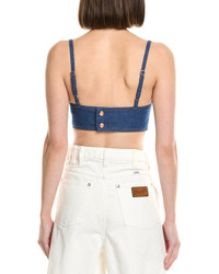 - Color/pattern: dark rinse - Approximately 14.5in from shoulder to hem - Model is 5'9 and is wearing a size small. Measurements may vary slightly by size. - Design details: adjustable shoulder straps - Snap back closure - 100% cotton - Machine wash - Imported