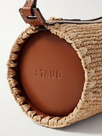 STAUD's mini 'Taru' shoulder bag will instantly elevate any outfit you wear it with, thanks to its modern cylindrical shape. It's made from smooth leather-trimmed raffia that's debossed with the brand's logo at the sides and will hold your phone, cardholder and compact. Details & Care - Raffia, camel leather (Calf) - Shoulder strap - Internal slip pocket - Unlined - Zip fastening along top - Comes with dust bag - Weighs approximately 0.9lbs/ 0.4kg