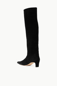 The Wally is a ruched suede knee-high boot featuring a pointed toe and a slim heel design. MORE DETAILS - Tall Suede Boot - If between sizes, consider sizing up - Upper: 100% Cow Leather; Sole: 75% Cow Leather, 25% ABS - Heel Height: 55mm/ 2.1", Shaft Height: 18", Calf Opening: 15.25"