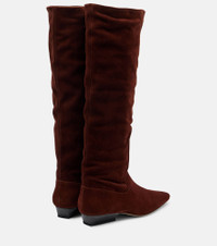 The Wally knee-high boots from Staud deserve a spot in your everyday rotation. Expertly crafted from soft suede, this pair is complete with low heels for optimal comfort. Product Details - Upper: leather - Lining: leather - Sole: leather insole and sole - Toe shape: pointed toe - Made in Portugal - Includes: shoe box - Designer color name: Mahogany - Item color: brown - Item number: P01077923 Size & Fit - True to size - European sizes - 2,5cm-1" heel (size EU 38) - 45cm-17.5" shaft height (size EU 38) - 39cm-15.5" shaft width (size EU 38) - shaft width measured on largest part of boot