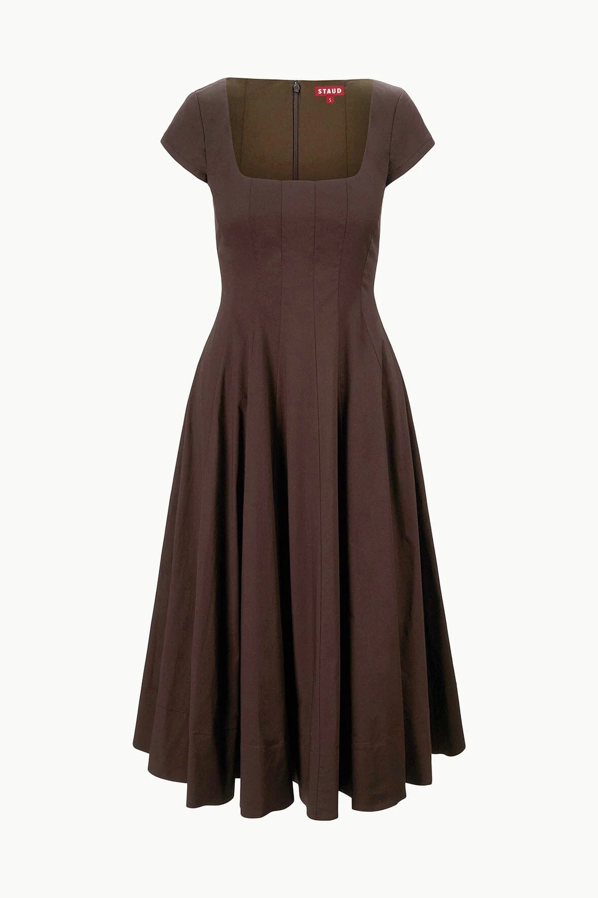 This short sleeve dress is fashioned after the STAUD signature Wells Dress and features the same corset-style panel construction and a-line skirt. MORE DETAILS - 98% Cotton, 2% Spandex - Model is 5'10 and wearing a size 2 - Dry Clean Only