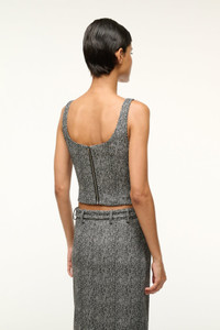 Inspired by our best-selling dress, the Wells Top is a corset style top featuring structured panels and a back zipper. MORE DETAILS - 75% Rayon, 22% Nylon, 3% Spandex - Model is 5'10 and wearing a size 2 - Dry Clean Only