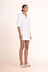 A mini version of our classic button down dress. The Mini Vincent features half-length balloon sleeves and is constructed out of a cotton poplin fabric. MORE DETAILS - 98% Cotton, 2% Spandex - Model is 5'10" and wearing a size Small - Dry Clean Only
