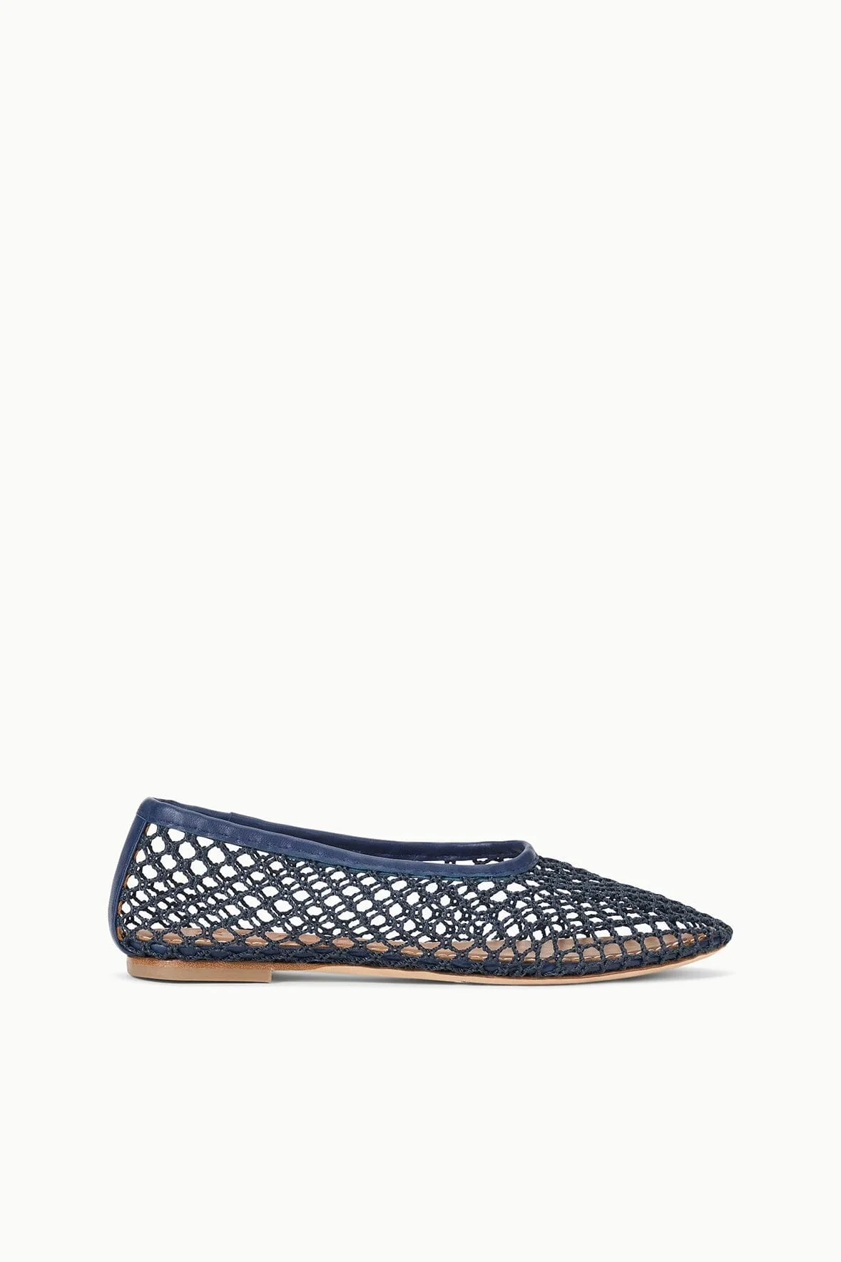 STAUD ALBA BALLET FLAT NAVY NETTING