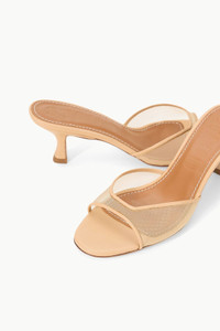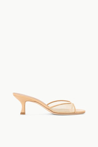 An open-toe mule crafted with mesh and soft nappa leather, the Brigitte is an essential kitten heel for versatile dressing. MORE DETAILS - Canvas kitten heel mule - If in-between sizes, consider sizing up - Upper: 100% Polyamide; Sole: 95% Cow Leather