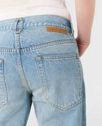 Item 6D02753SPH834052 Elevated utility hardware is a consistent theme in Stella McCartney’s latest collection. These jeans, tailored from soft organic cotton, skim the thighs with a neat, straight-leg fit that pan out into flares from the knees. Detailed with gold clasps stitched onto two front pockets. - Color: Blue denim - Vintage wash blue denim - Low rise - Belt loops - Flared leg - Two front pockets, two back pockets - Clasp embellishment at waistband - Distressed hems - Concealed zipper fastening - Made in Portugal Product Care & Fit Advice Care: Dry clean only Composition: Main fabric: 100% cotton Size: Fits true to size Designed for a regular fit Midweight, non-stretch fabric