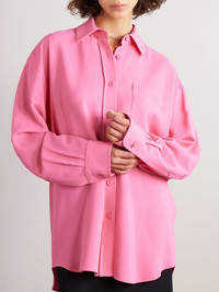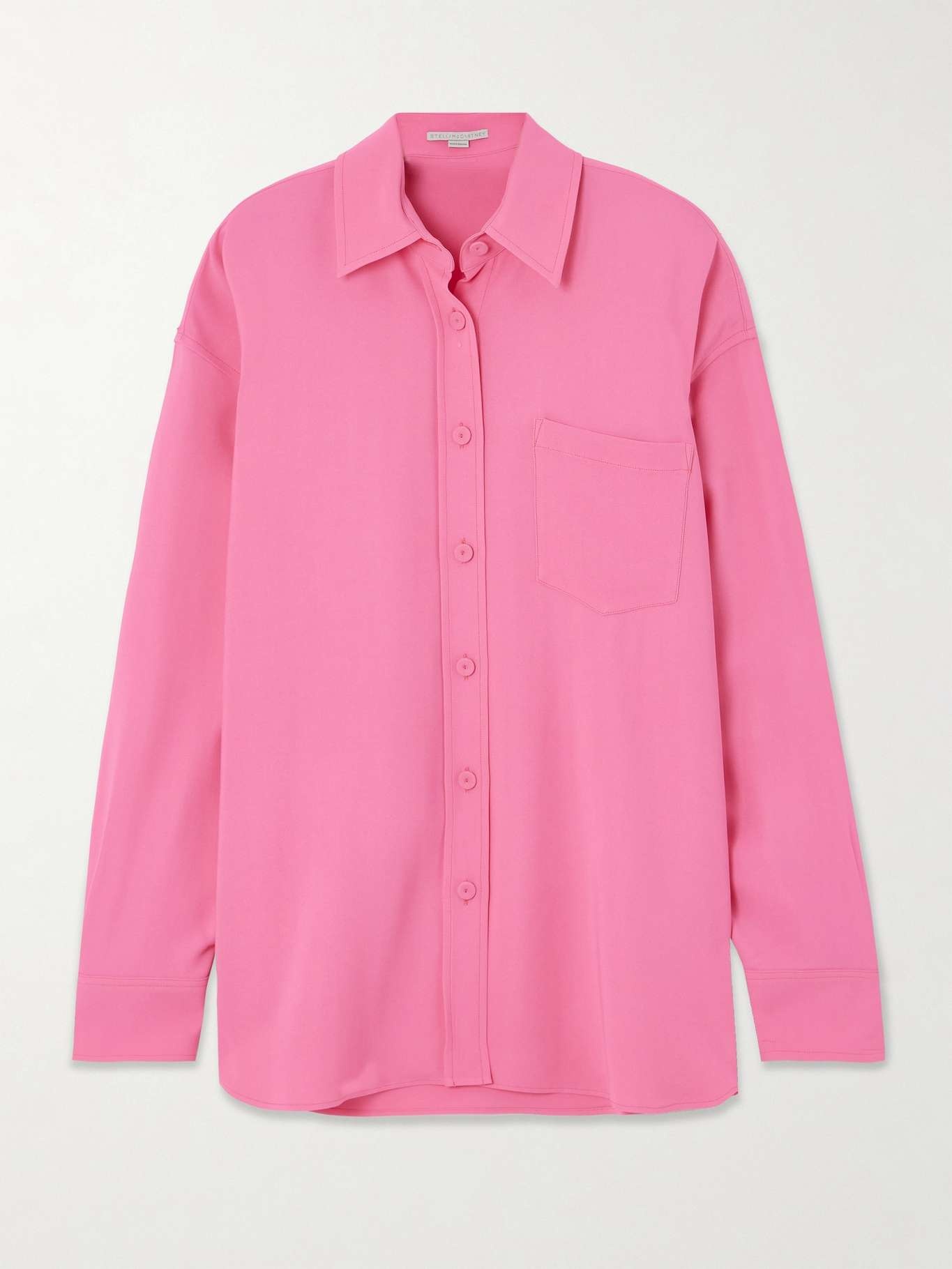 EDITORS'NOTES Stella McCartney’s shirt is cut for an oversized fit, emphasized by dropped shoulders and an elongated back hem. Made from vibrant pink crepe and traced with tonal buttons, it has a pleated back and cuffs for added volume. Wear it open over a tank top or tucked into a high-waisted skirt.<br><br>This product was created using Considered Materials. Find out more about NET SUSTAIN <a href="https://www.net-a-porter.com/en-gb/campaigns/net-sustain">here.</a> SIZE & FIT - Fits true to size, take your normal size - Designed for a loose fit - Dropped shoulder seam - Mid-weight, non-stretchy fabric - Model is 180cm/ 5'11" and is wearing an IT 40 DETAILS & CARE - Pink crepe - Button fastenings through front - 96% viscose, 4% elastane
