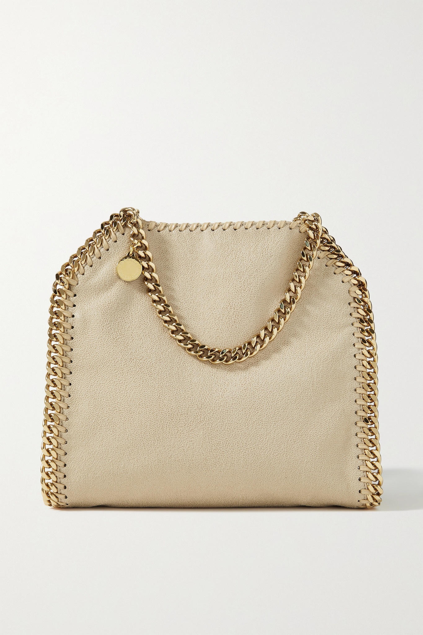 EDITORS'NOTES Stella McCartney's 'Falabella' tote is instantly recognizable by its polished chain trims that resemble whip-stitching. Sustainably made in Italy from beige vegetarian brushed-leather, it has a soft, unstructured silhouette and fits your phone, wallet and keys.<br><br>This product Reduces Waste. Find out more about NET SUSTAIN <a href="https://www.net-a-porter.com/en-gb/campaigns/net-sustain">here.</a> SIZE & FIT - Handle Drop: - 50cm - / 19.7in - Depth: - 7cm - / 2.8in - Height: - 24cm - / 9.4in - Width: - 24cm - / 9.4in DETAILS & CARE - Beige vegetarian brushed-leather - Magnetic fastening at open top - Designer color: Butter Cream - Comes with dust bag - Weighs approximately 2.2lbs/ 1kg