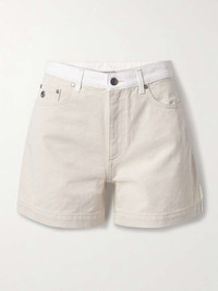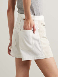 EDITORS'NOTES Stella McCartney's shorts are made from organic denim that's grown without the use of harmful chemicals or pesticides. They're designed in a two-tone colorway and hit mid-thigh. Wear yours on warm days with a tank and slides. SIZE & FIT - Fits true to size, take your normal size - High-rise, cut for a slightly loose fit - Mid-weight, non-stretchy fabric - Model is 180cm/ 5’11” and is wearing a size 26 DETAILS & CARE - White and ecru organic denim - Button and concealed zip fastening at front - 100% organic cotton - Machine wash