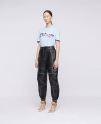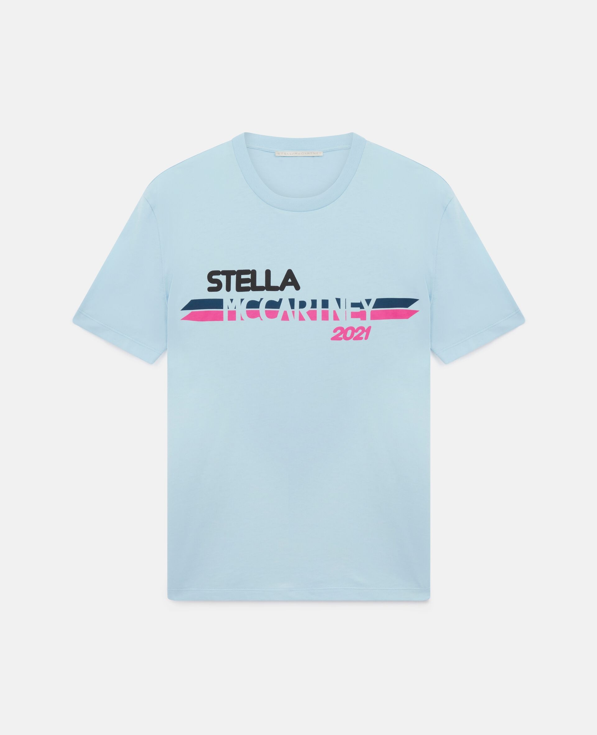 - Color: Light Blue - T-Shirt - Crew-neck, short sleeves - Stella McCartney 2021 logo print at the front - Made in: Portugal - Care: Machine washable 30°C - Composition: 100% Organic Cotton - Fits true to size - Designed for a regular fit - Lightweight, slightly stretchy fabric - Model is 5ft 10in/ 1.78m, is a size UK08 and wears a size IT40 (US04/ UK08/ FR36)