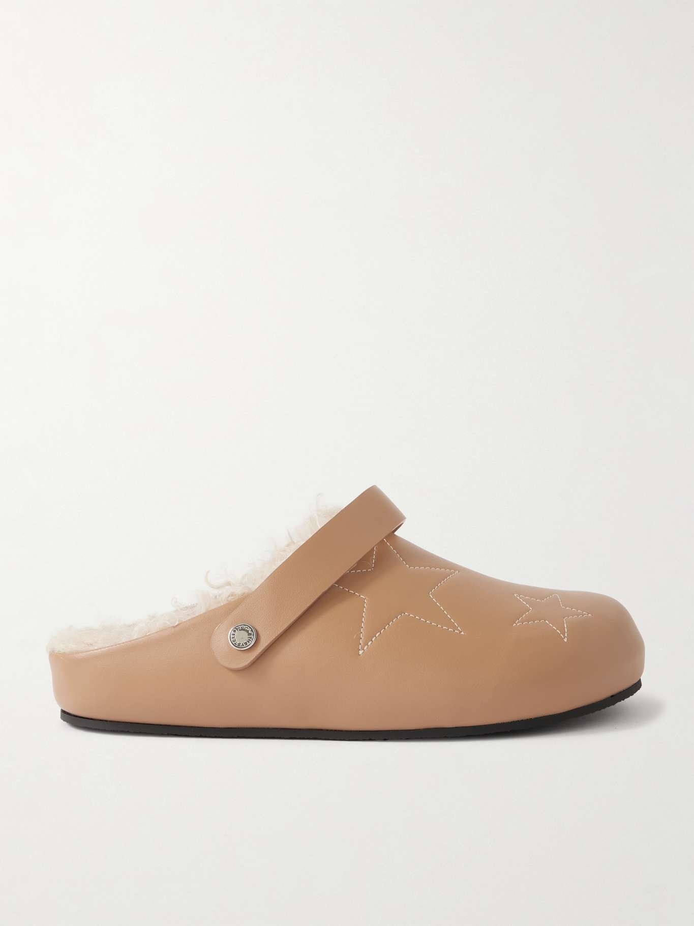 EDITORS'NOTES Stella McCartney's 'Elyse' mules are scattered with the stars seen throughout the Fall '24 collection. Made from the brand's signature vegetarian leather, they have a comfortable low-top silhouette with a single strap that you can wear as a slingback if preferred. The faux-shearling lining will cushion your instep and feel so warm and cozy. SIZE & FIT - Fits true to size, take your normal size - Italian sizing DETAILS & CARE - Slight heel - Light-brown vegetarian leather, beige faux shearling - Slip on