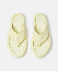 The Air Slide is our first style created with recycled manufacturing waste sourced directly from the factories it is made in. In fact, nearly every component of the progressive flip-flop has recycled content. Its exaggerated midsole is made with 50% recycled phylon (manufacturing waste) – a step in a more circular, zero-waste direction. - Color: Pale Yellow - Flip-flops - Exaggerated outer sole - Tonal webbing straps, Stella McCartney logo - Made in: China - Care: Spot clean only with soft damp cloth - Composition: Upper 100% Recycled Polyester; Lining 100%; Outsole 100% Rubber Product Care & Fit Advice - 30 mm/1.2 in. platform - Fits true to size - All of our shoes and accessories are made from non-leather materials as part of our cruelty-free ethos.