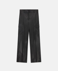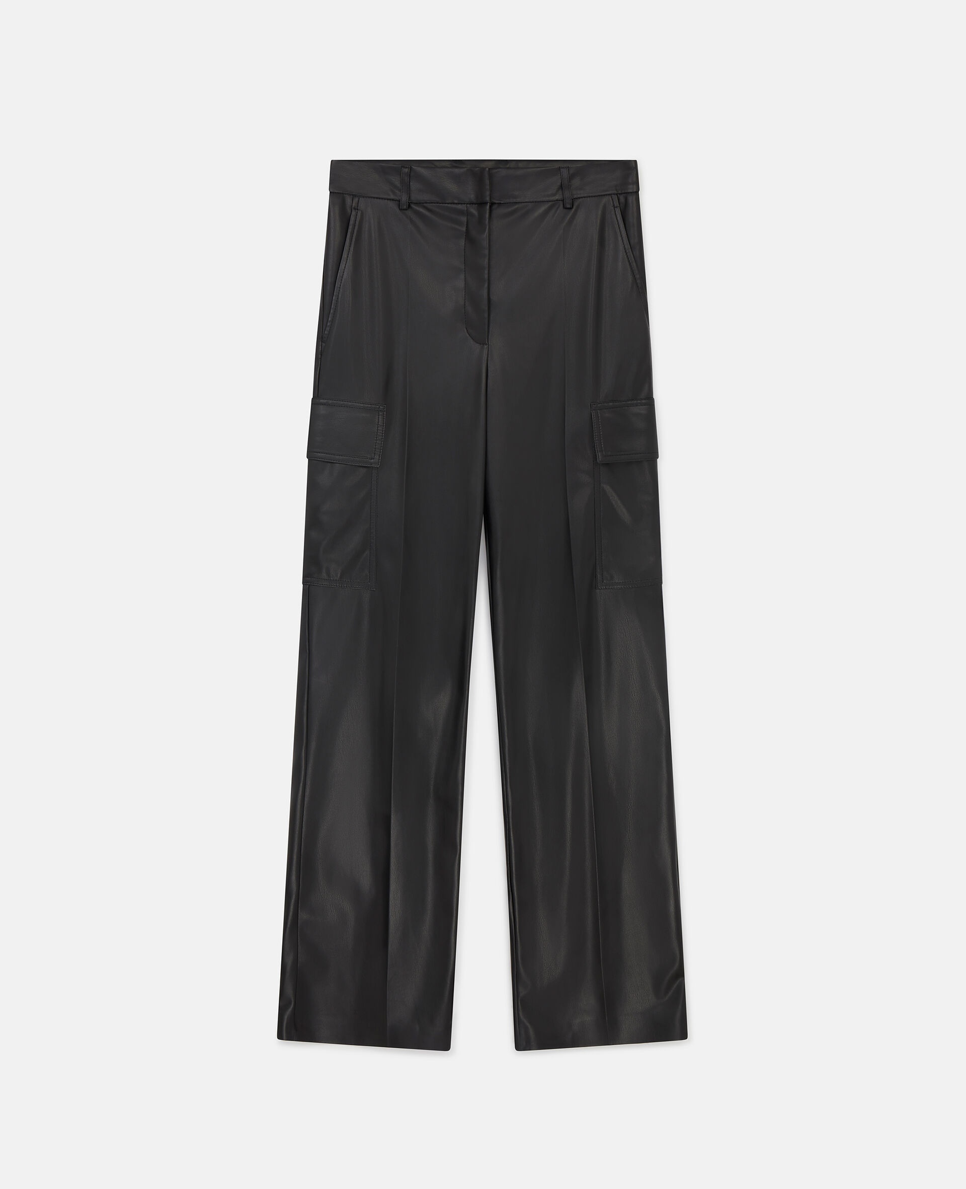 These cargo trousers from Stella McCartney are a Noughties nod. Made from smooth Alter Mat, our luxury vegan alternative to animal leather, the trousers have a flat waistband, concealed fastenings and classic cargo pocket styling. - Colour: Black - Midnight black - Smooth Alter Mat vegan alternative to animal leather - Flat waistband - Belt loops - Zip fly with concealed hook-and-bar fastening - Two side cargo pockets - Made in Italy Product Care & Fit Advice - Care: Dry clean only - Composition: Main fabric: 100% polyurethane, Backing: 100% polyester - Fits true to size - Designed for a regular fit - Mid-weight, non-stretch fabric
