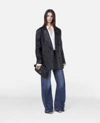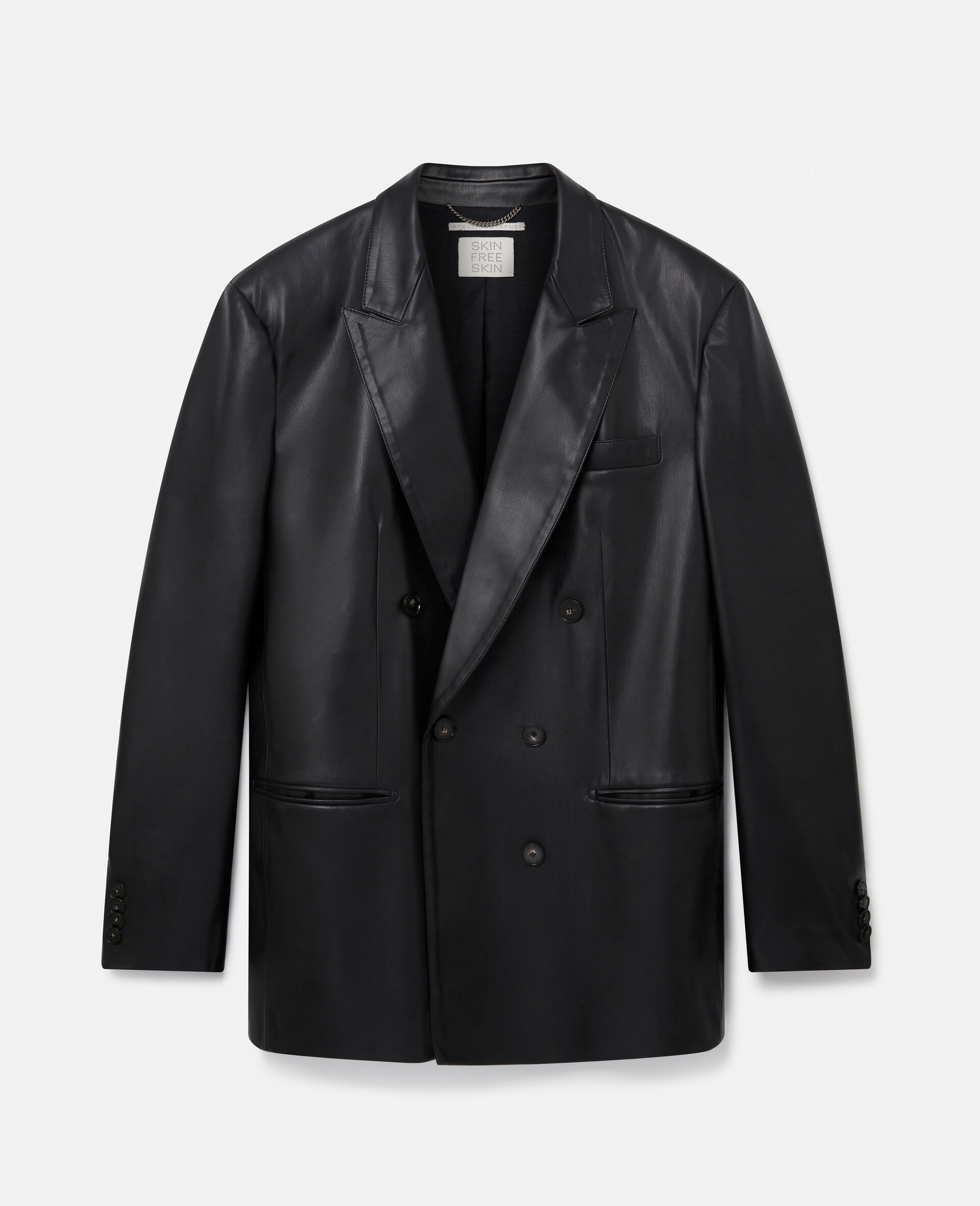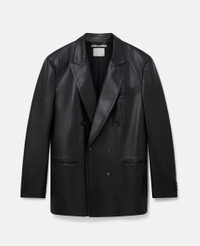 Item 6500653BU3931000 This jet black blazer is boldly oversized – an elevated Stella twist. Consciously crafted from petal-soft Alter Mat, our signature cruelty-free alternative to animal leather, the blazer has a double-breasted front and is lined in forest-friendly viscose – kinder to Mother Earth. - Colour: Black - Jet black - Alter Mat vegan alternative to animal leather - Peaked lapel - Long sleeves with button cuffs - Padded shoulders - 3x2 double-breasted button fastening - Two front welt pockets - Forest-friendly lining - Made in Italy Product Care & Fit Advice - Care: Dry clean only - Composition: Main fabric: 100% polyurethane, Backing: 100% polyester, Lining: 100% viscose - Fits true to size - Designed for an oversized fit - Mid-weight, non-stretch fabric - Model is 5ft 10.5in./1.79m, is a size UK 6 and wears a size IT 40 (US 4-6/UK 8/FR 36)